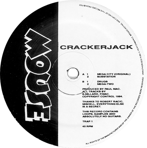 The “Mega City” vinyl 12″ EP (TRAP 1) was released on Millard’s own label Mouse Records in 1994.